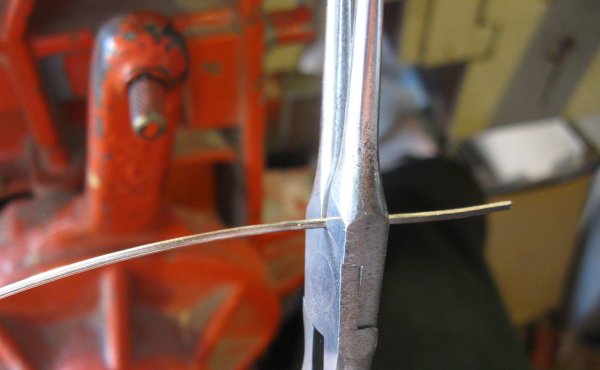 For the thinner wires I start at one end, hammer them in, trim them with a graver...