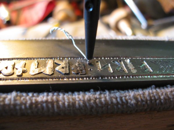 For the dot inlays I form a bead on the end of the wire using a torch.